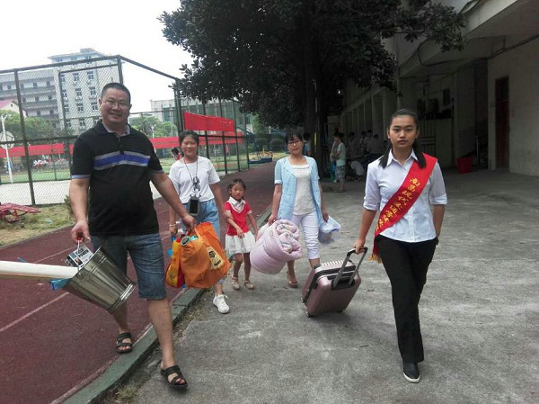 由學(xué)生干部組成的志愿者也在各接待點(diǎn)緊張忙碌著,為新生搬運(yùn)行李,引導(dǎo)他們辦理入校手續(xù)。